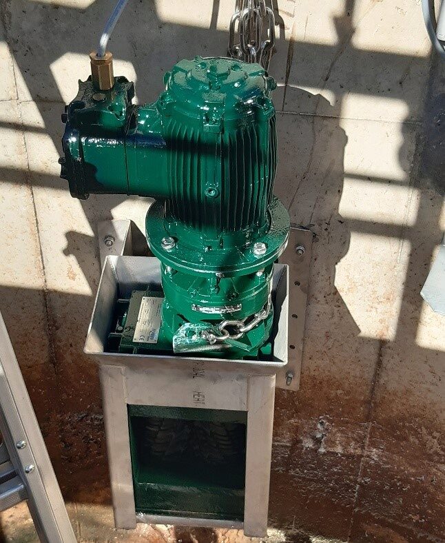 Dans un poste de relevage existant, le Panier Broyeur® se compose d’un broyeur installé à l’arrivée des eaux usées, juste en amont de la pompe installé dans sa structure de maintien. Le rôle du broyeur est de réduire l’ensemble des déchets présents dans les effluents à une taille maîtrisée, afin de limiter les risques de colmatage et de préserver le bon fonctionnement de l’installation. Le panier assure, quant à lui, le maintien du broyeur face au flux entrant, tout en permettant son extraction simple lors des opérations de maintenance. L’un des grands avantages de cette solution est qu’elle ne nécessite aucune intervention spécifique pour la gestion des déchets solides : ceux-ci traversent directement la chambre de coupe du broyeur, où ils sont fragmentés avant de poursuivre leur chemin dans le poste et le réseau par les pompes en place.