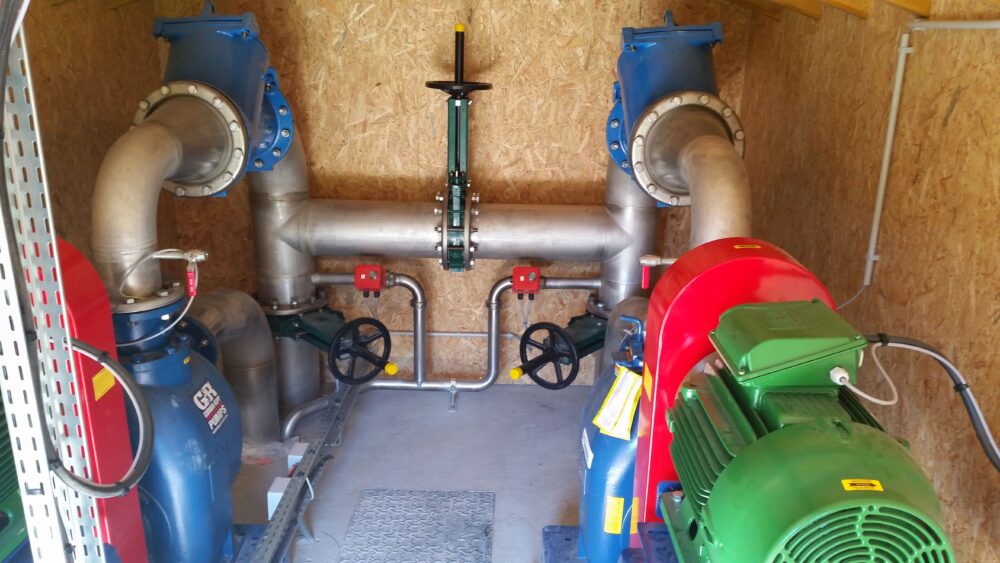 N’étant pas installées dans le poste de relevage, les pompes auto-amorçantes n’auront que leurs canalisations d’aspiration qui seront descendues dans le fond du poste. Le volume d’emprise est donc réduit à sa plus simple expression.